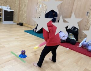 2月どようぴ~す。スーパーへ行っておやつを購入するお買い物体験&体育館でのゴルフ大会をしました!